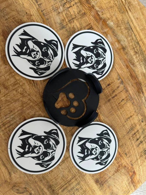 3D Onderzetters Boxer – Set van 6 met Houder
